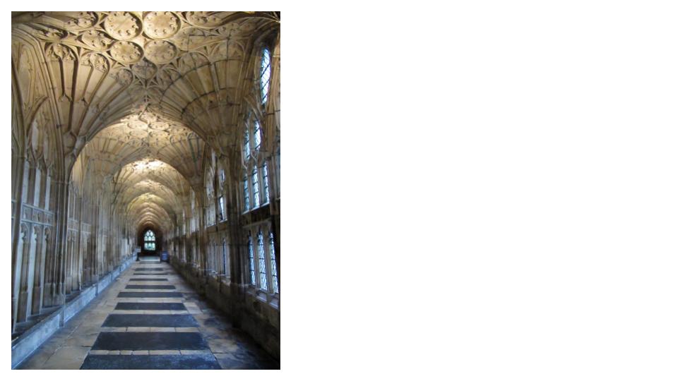 That’s the cloister walk. I hung out there every chance I got. I lived in Gloucester that spring, so the cloister walk, that cool tunnel with the awesome shade patterns, I breathed it. It’s cool and doesn’t echo like you think it would. All the windows and bridgework let the cobblestones click, but there’s not much of a kickback sound, so you don’t have to worry about telling secrets. You can speak at a normal tone.
