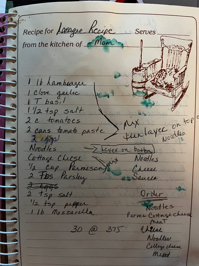 Mom’s Lasagna, even if it’s drifted from the original words a tad, will make. you smile.