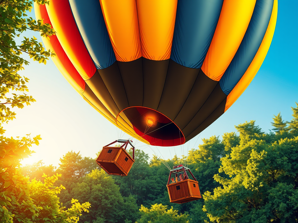 Martin’s mouth hung open as the hot air balloon rose over the trees. He heard the hot air being released under the bulbous fabric as it climbed towards the daylight half moon that hung suspended almost secretly against the blue of the sky. The silky fabric wiggled against the azure expanse and danced around a wisp of a cloud. Higher it climbed.